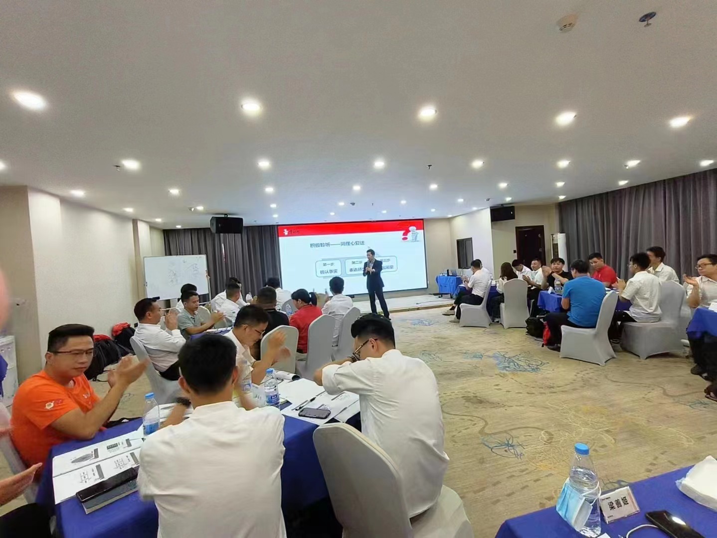 2023年5月25日某世界五百?gòu)?qiáng)集團(tuán)廣州行銷公司組織公司員工參加了天津漢邦企業(yè)管理咨詢有限公司張老師主講的《營(yíng)業(yè)所長(zhǎng)高績(jī)效團(tuán)隊(duì)管理》課程,課程特色:快速見效: 所教授技巧及練習(xí),經(jīng)過實(shí)踐驗(yàn)證均能實(shí)時(shí)帶來(lái)改變;互動(dòng)體驗(yàn): 通過互動(dòng)式學(xué)習(xí),引發(fā)學(xué)員深刻感悟,倍增學(xué)習(xí)成效;實(shí)戰(zhàn)演練: 通過演示和輔導(dǎo),讓學(xué)員即學(xué)即用,實(shí)戰(zhàn)演練成習(xí)慣;
