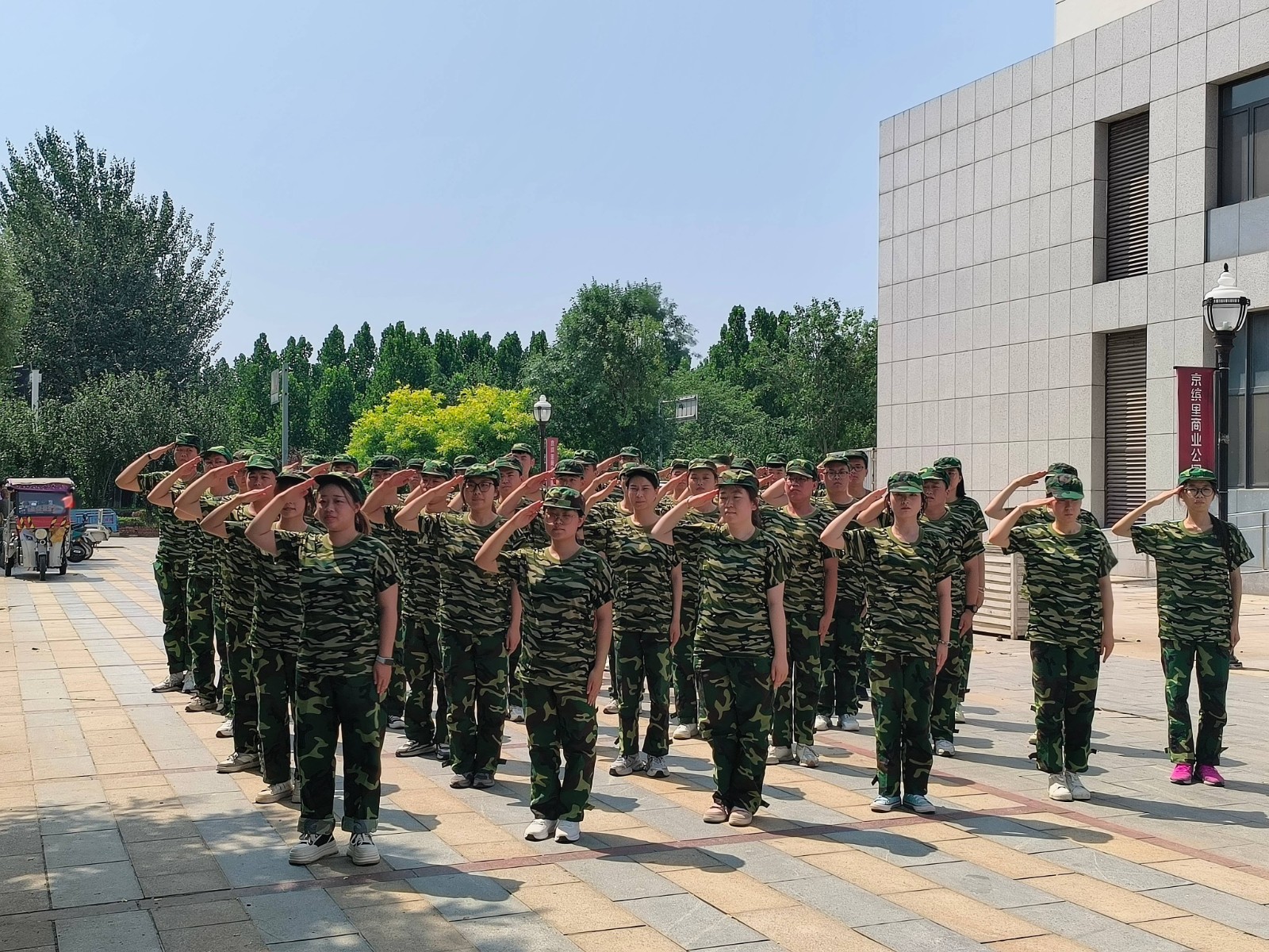 新員工軍訓(xùn)是許多企業(yè)和組織為了培養(yǎng)新員工的團(tuán)隊(duì)協(xié)作能力、?執(zhí)行力和紀(jì)律性而采取的一種重要措施。?通過(guò)軍訓(xùn),?新員工不僅能夠增強(qiáng)體質(zhì),?還能在嚴(yán)格的軍事訓(xùn)練中學(xué)習(xí)到團(tuán)隊(duì)合作和自我挑戰(zhàn)的重要性。某汽車集團(tuán)2024年7月2-8日進(jìn)行了《軍訓(xùn)》培訓(xùn),公司希望通過(guò)進(jìn)行嚴(yán)格的軍事訓(xùn)練,讓員工學(xué)習(xí)軍人遵守紀(jì)律、不怕吃苦、高效執(zhí)行、勇于奉獻(xiàn)的精神,從而在今后的工作當(dāng)中養(yǎng)成令行禁止,高效執(zhí)行的職業(yè)素養(yǎng)。
